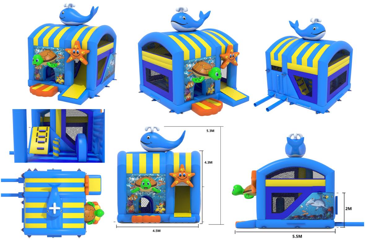 Diese Hüpfburg ist speziell für unsere kleinere Veranstaltungen konstruiert. Die Burg ist ca. 4,5m Breit und 5,5m lang somit hat sie eine Fläche von ca. 25m². Als optisch Highligt haben noch einen Wal auf das Dach gesetzt.
