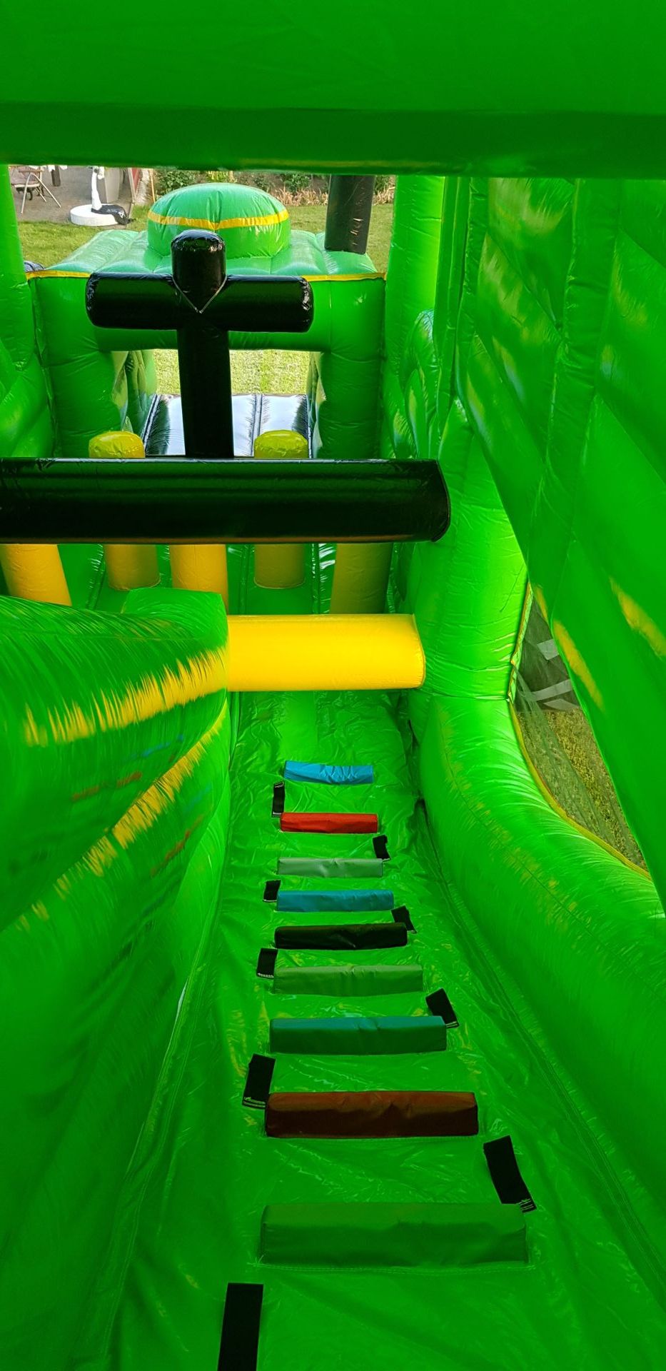 Die MultigameTraktor Hüpfburg darf auf keinem Hoffest, keiner Vereinsfeier und keinem Stadtfest fehlen! Sie überzeugt durch das riesige Schlepper Gespann Design und ist der realität sehr nahe. Im Inneren des Traktors befinden sich zahlreiche Hindernisse und am Ende im Anhänger ist noch eine riesen Rutsche verbaut. Durch die Netzte an der Seite, bleiben die Kinder immer im Blickfeld der Aufsichtspersonen.